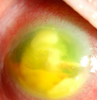 Corneal ulcers are very serious because they can severely blur your vision or cause loss of the eye. Some infections are so aggressive that they can eat a hole in the eye in just a few days. One of the most aggressive infectious agents, a bacteria called pseudomonas, causes over 50% of all contact lens-associated corneal ulcers.