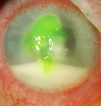 However, absolute strict adherence to the prescribed treatment protocol is a MUST, even if the drops are irritating. The drops are hard on the eye, but they are much harder on the infection. Aggressive infections can eat a hole into the eye and can even cause loss of the eye. Successfully eradicated infections may heal with scars that can distort vision and may require special contact lenses or even corneal transplantation to improve the vision.