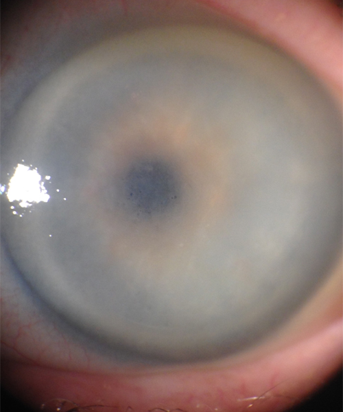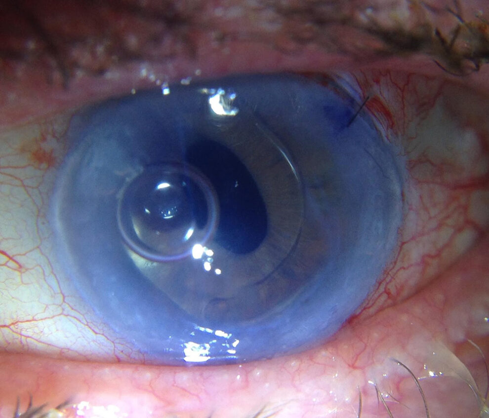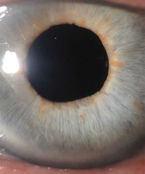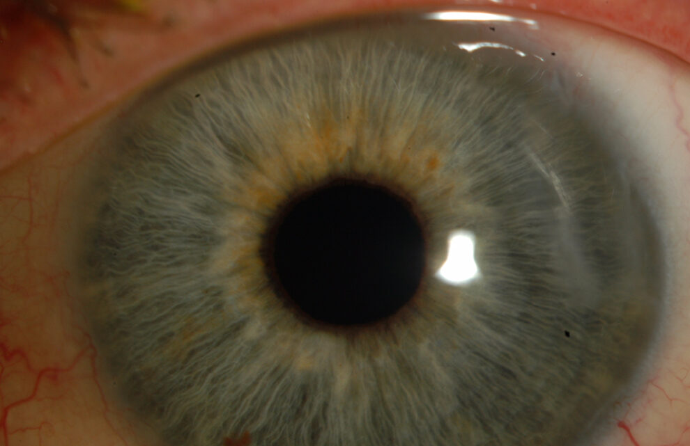 Prior to DMEK surgery (less than 24 hours ago), the patient’s iris details and lens in front of his eyes wouldn’t have been distinguishable on a photo like this.