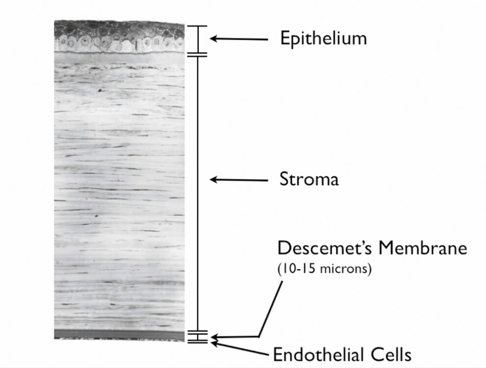 Different layers of the cornea.