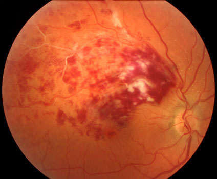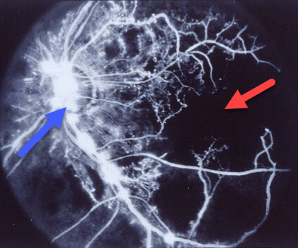 Panretinal laser photocoagulation (PRP), similar to that performed for proliferative diabetic retinopathy, is performed if neovascularization develops. Laser photocoagulation decreases the chance of developing vitreous hemorrhage (29% with laser vs. 61% without treatment). Additional treatment should be considered if neovascularization persists at the 4-month follow-up examinations. Some eyes will develop severe vision loss if retinal neovascularization bleeds into the vitreous. Vitrectomy surgery is done in the operating room on an outpatient basis. These advanced microsurgical techniques often allow us to restore vision by removing the hemorrhage and bleeding tissues.